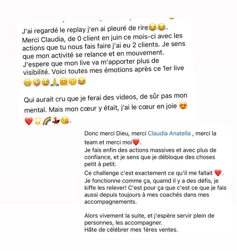 Des limitations d’âge s’appliquent: La société CLAUDIA ANATELLA WELLNESS LLC n’accepte que des clients de plus de 16 ans (pour les produits physiques et électroniques) et de plus de 18 ans (pour les services: coaching, ateliers, séminaires). Nous faisons de notre mieux pour restreindre l’accès à nos sites, produits et services aux mineurs. Même si le contenu de nos produits et services n’est pas de nature choquante, nous préférons nous adresser à un public mature et capable d’appréhender les implications et les responsabilités du monde de l’entreprise. Tout inscrit à la newsletter ne remplissant pas ces critères (âge supérieur à 16 ans) sera immédiatement supprimé de notre base de données dès que ce fait est porté à notre connaissance. De même, tout client ne répondant pas à ces critères sera immédiatement remboursé et un retour du ou des produits concernés sera exigé.