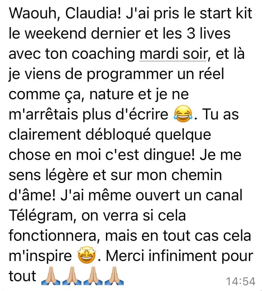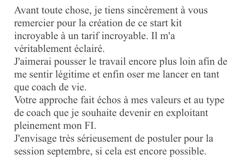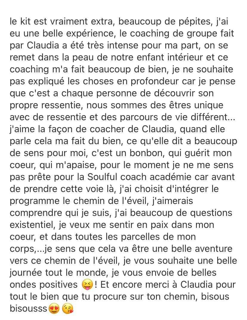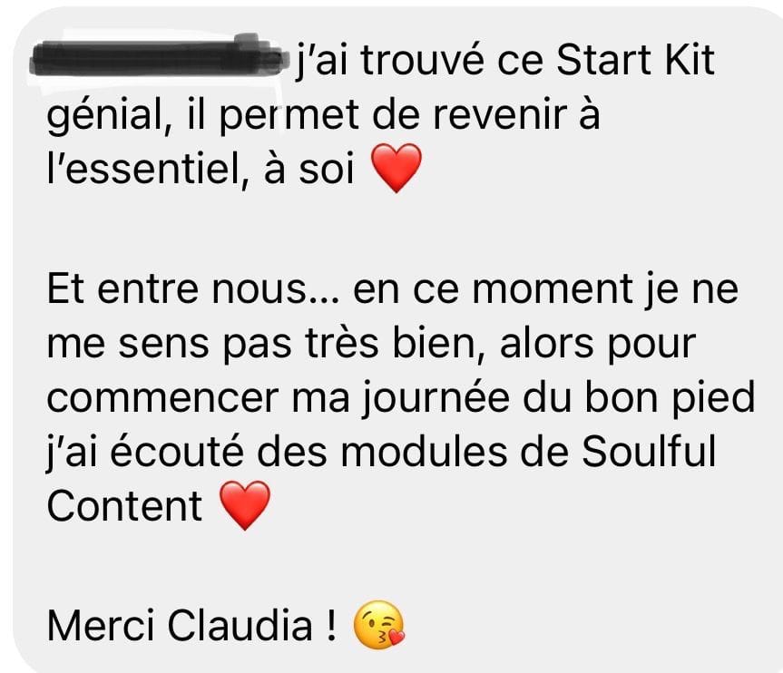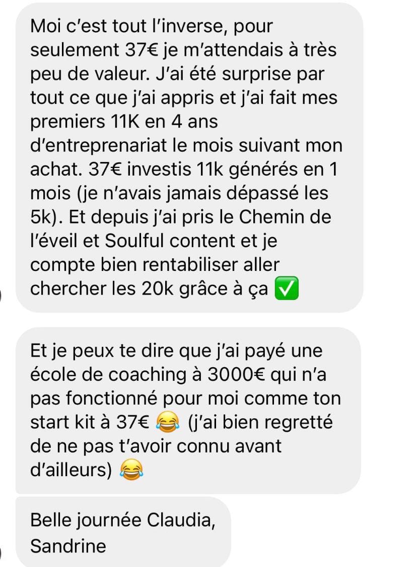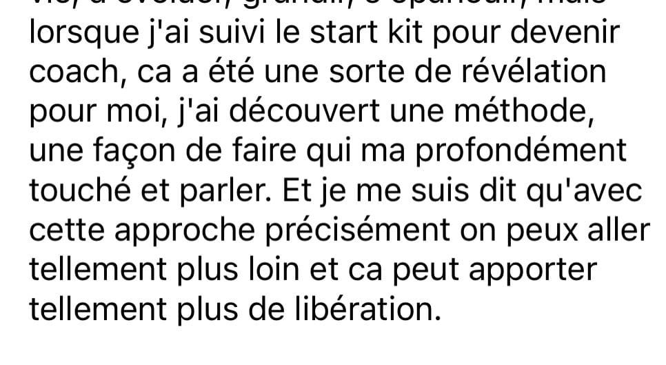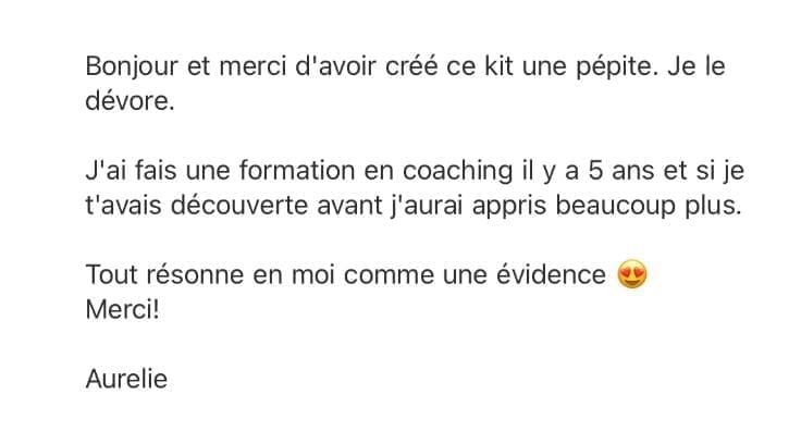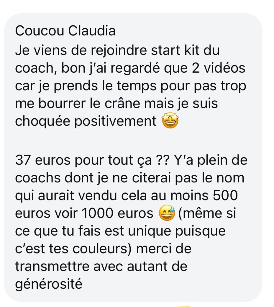 Le Start Kit est à un prix vraiment accessible, et je pourrais le proposer plus cher, mais je tiens à ce que le plus grand nombre de coachs et de guides découvrent une nouvelle manière d’accompagner, capable d’AIDER VRAIMENT leurs clients… et tout commence toujours par soi !
