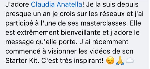 J’ai commencé à gagner de plus en plus d’argent et à devenir de plus en plus confiante et mon agenda était rempli, j’avais une liste d’attente et j’ai commencé à créer des programmes en ligne tellement les gens voulaient travailler avec moi… mais je dois dire que ma méthode de coaching s’est transformée il y a 2 ans, j’ai mis ensemble les techniques les plus puissantes que j’ai apprises et j’ai enlevé tout ce qui finalement m’éloignait moi et mes clients des résultats et je suis revenue à l'essentiel.